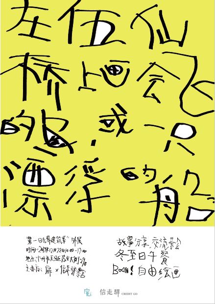 社区营造并非只能在一个完整的社区进行:每一栋建筑都需要营造,营造的过程是人与所处环境对话的过程,也是重新思考和构建人与空间关系的过程。基于对营造的思考与实践,改造设计当中就已经开始考虑后续的「生长」,并留下一定的空间给生活在其中的人参与和再创造。“伍仙桥”有着难得的“U”型公用空间,居住和生活在其中的人需经由公共的入口和过道回到自己的房间,如支流般分散。也是利用这样的特点,扉希望能够利用起来发生故事,营造更为温暖的空间,如此“伍仙桥”能够成为真正的“桥”,将各自隔绝的人们重新联系起来。“伍仙桥”的公共空间如平放的“U”型桥,希望它能搭建出真正的“桥”房子改造好了,以空间、营造行动为桥梁的租户间的故事才慢慢展开。因此我们计划并开始了第一次的艺术营造——「冬至日伍仙桥绘画马拉松」,从入口开始,以过道的两面白墙作为连续的画板,鼓励租户参与,以绘画的形式在白墙上进行自由创作。我们希望通过行动,让租户之间产生联系,并对空间产生体验,通过行动让其自主构建属于自己的空间。18号下午四点左右,我们包装好礼物和邀请函,专门挑了傍晚的时间抵达现场,尝试第一轮的介入:只有寥寥可数的几户人家开了门,简短仓促的对话显得极为匆忙。更多的情况是,租户还没下班回家。“大部分租户都是附近上班的年轻人,下班都很晚,有的凌晨才回来”了解到租户的构成,莫名有了一丝理解与生活的对应:休息时只想睡觉,玩手机、看电脑,很少与人面对面沟通、甚至对生活渐渐无感、冷漠的状态...当代年轻人的生活被“快消的信息”冲击,但是快乐也是快速的,短暂感官快乐过后是独自面对生活的无奈与压力。艺术营造的另一方面也是希望人们能够回归生活本身,让建筑也回归本身——发挥其角色,构建与使用者之间的联系。为了打开更多可能,我们开始进一步推进活动。
