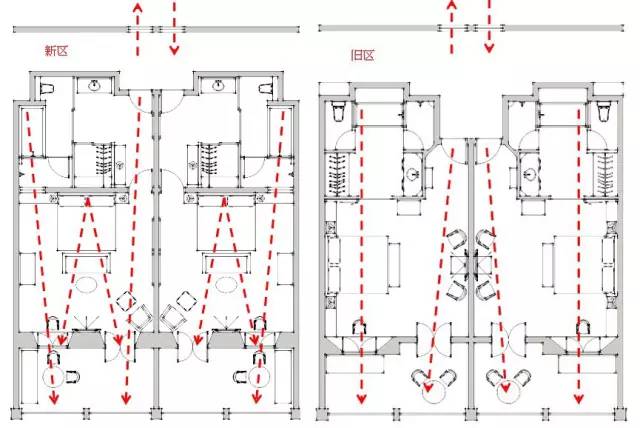 二、三层面向道路的走廊外墙,试想在狭长的走廊上,若是没有这些宽窄凹凸的变化,岂不是很闷?在丰富视觉趣味的同时,又解决了走廊的采光和通风,外立面不仅仅是为了寻求美观,充分的与功能结合,充满了多样性。