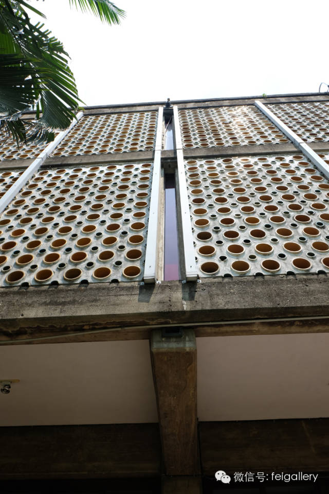 台灣大學農業陳列館建成于1964年,也是台灣經濟困難的年代。建築師利用直徑不同的瓦筒做大面積的立面構圖,從室內透過磨砂玻璃窗看出去,竟然變成影影綽綽的中國古典園林花窗。