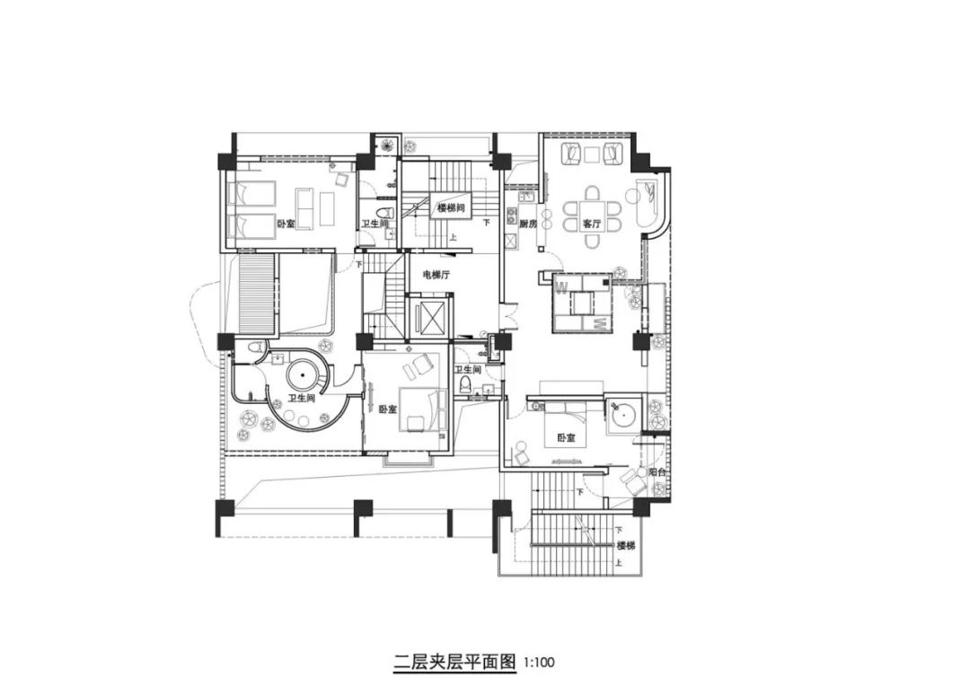 图9-12 二层,二层夹层,三层,三层夹层平面图