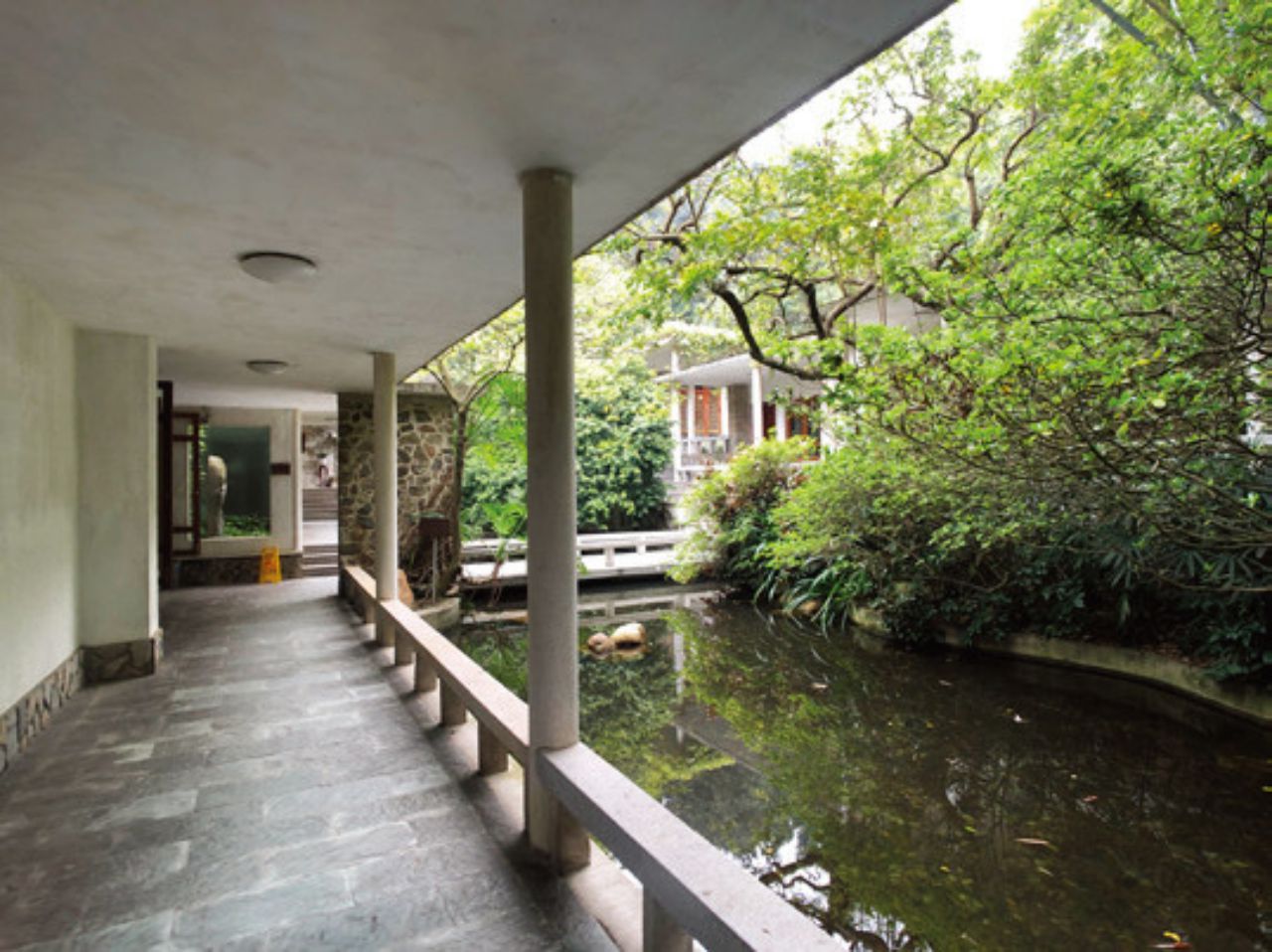 在岭南早期现代主义建筑的地域性尝试中,以夏昌世、莫伯治为首的建筑师们就做出了很多适应岭南气候的设计,确立了岭南建筑轻巧通透的特征。夏昌世创造的“夏氏遮阳”是一种与建筑形体相结合的遮阳形式,在没有设备辅助的条件下为建筑提供尽量舒适的热环境,曾被广泛运用到中国南方地区的建筑中,对后来的亚热带绿色建筑研究产生了深远的影响[12]。他还与莫伯治一起研究了岭南传统庭园,并著有《岭南庭院》一书,后者据此设计了很多庭院式的现代建筑,环境幽雅,空间丰富,又与自然相交融。在莫伯治设计的白云山庄旅社和双溪别墅乙座中,都可以看到一个面向山坡的小庭院,山坡上长满了植物,上方的盖顶与山体之间留出了缝隙,既提供了遮阳,又让自然的空气得以进入[13]。